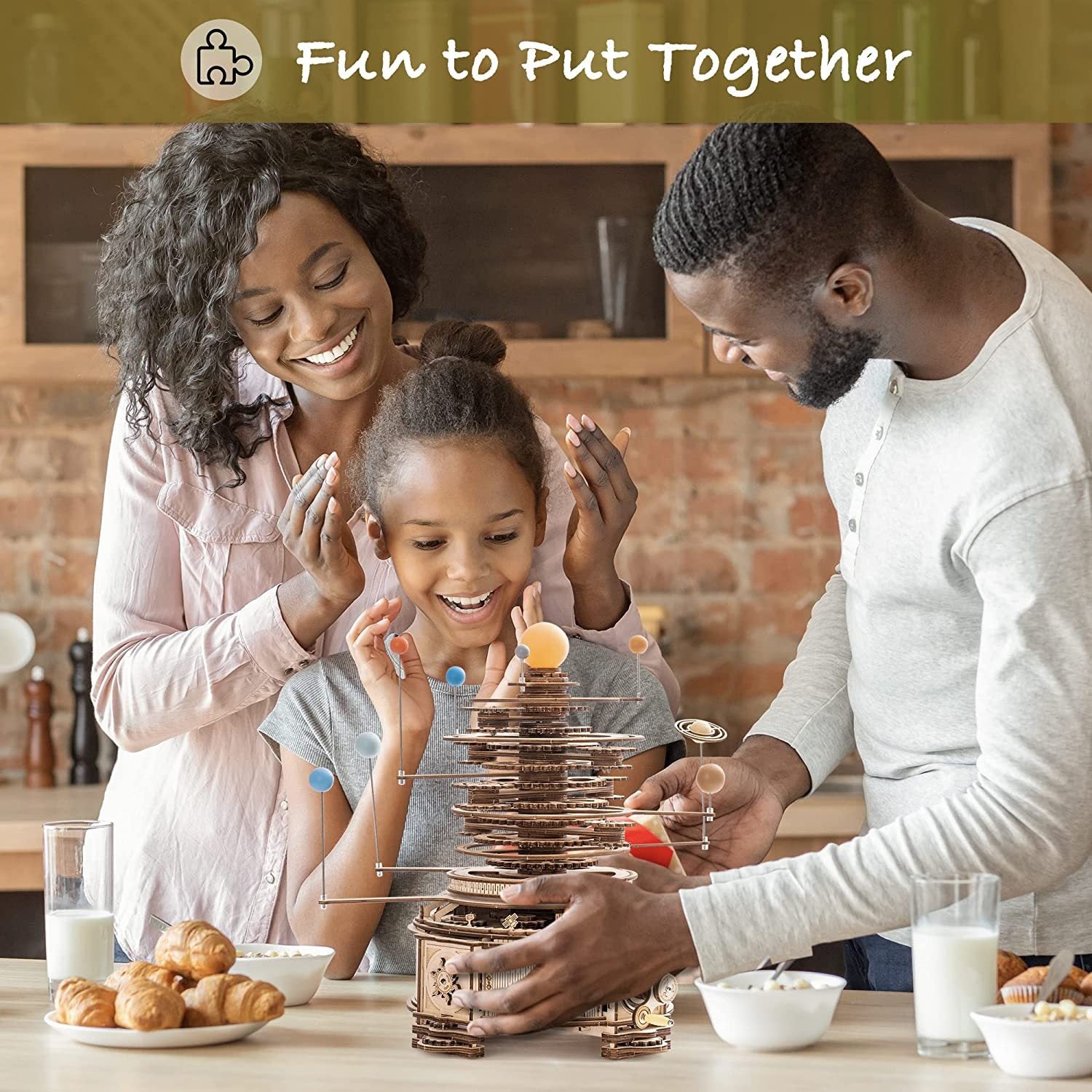 Robotime ROKR 316 pièces rotatif mécanique Orrery 3D jeux de Puzzle en bois assembler des Kits de construction de modèles jouets cadeau pour enfants garçons