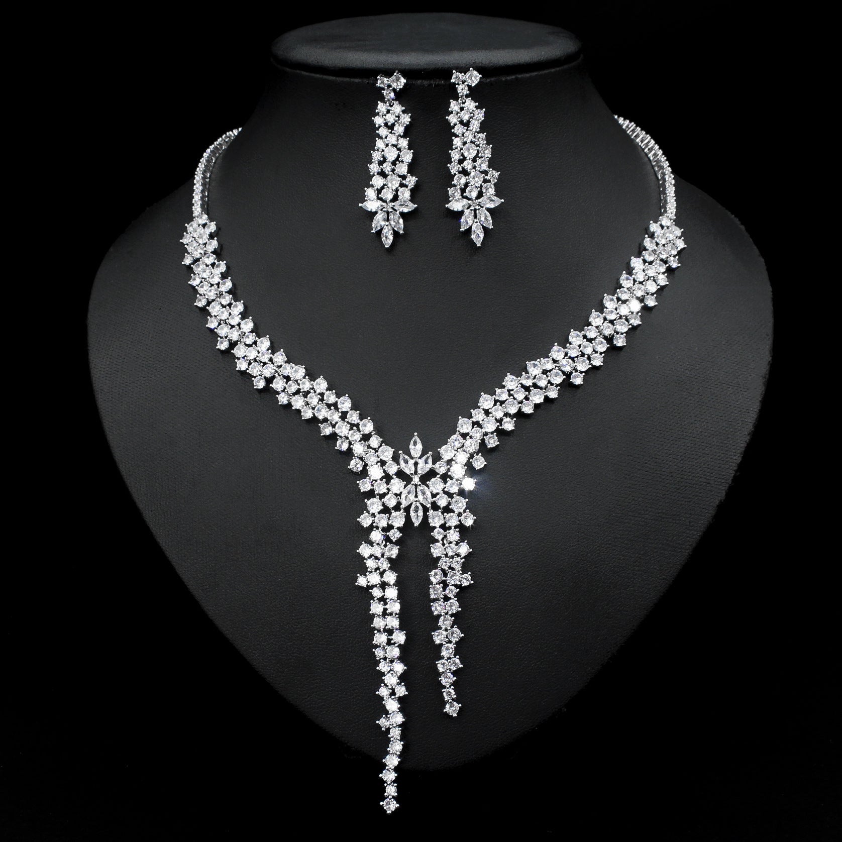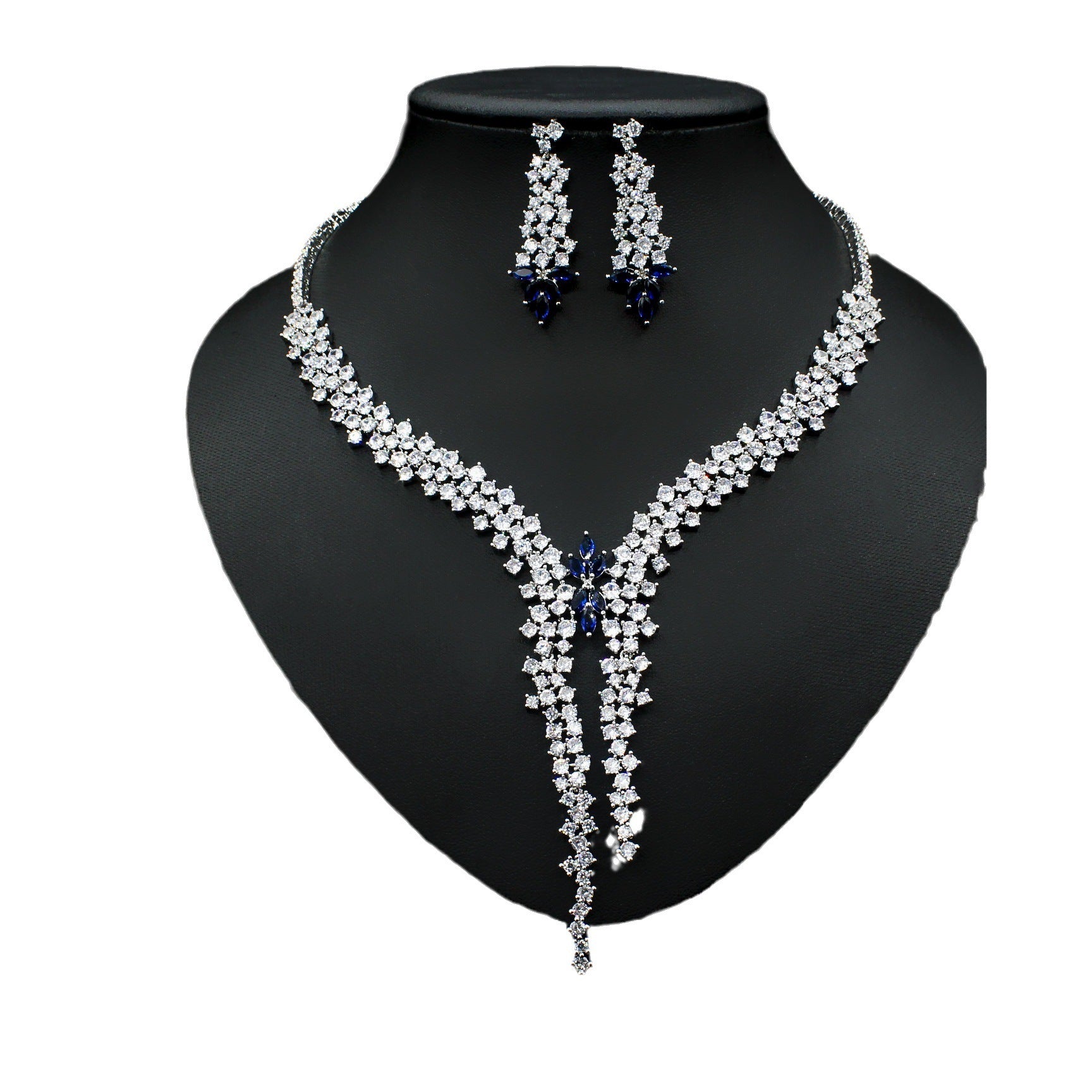 Ensemble de boucles d'oreilles et collier en Zircon incrusté exagéré, aiguille en argent