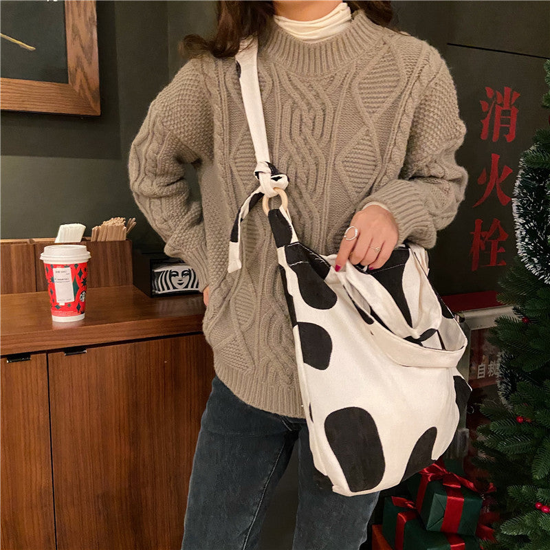 Sac messager rose rétro artistique simple de grande capacité