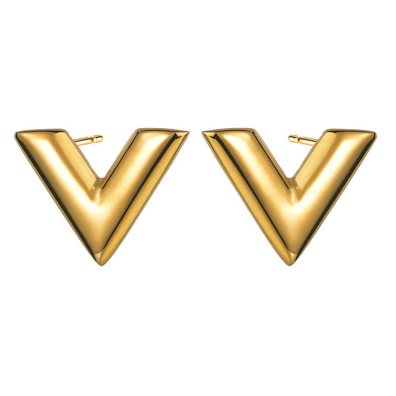 Collier Simple en forme de V en acier inoxydable, Bracelet, clous d'oreilles, costume