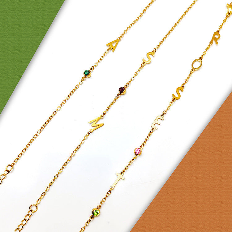 Bracelet Diamant d'Eau Acier Titane Femme 26 Lettres Anglaises