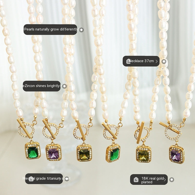 Chaîne de clavicule en Zircon, ornement rétro, perle d'eau douce, boucle OT