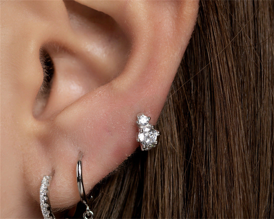 Boucles d'oreilles classiques à trois zircons, petite boucle d'oreille plaquée en or véritable