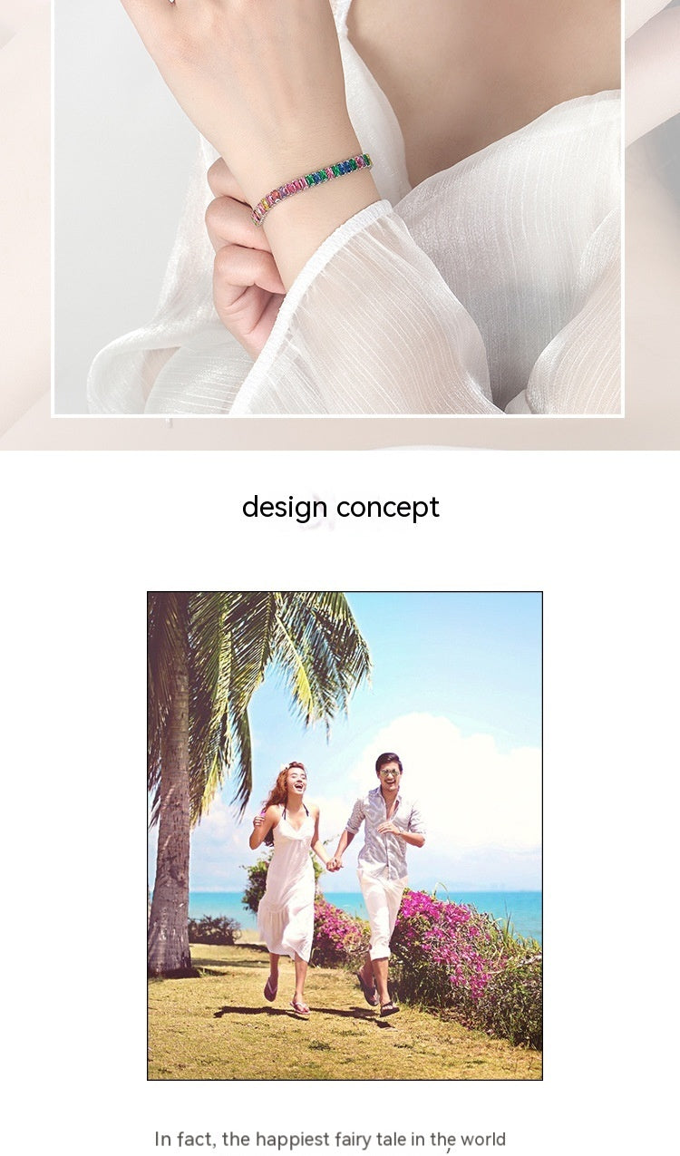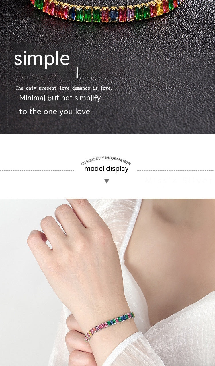 Bracelet en Zircon de couleur européenne et américaine, plein de diamants, Tennis en cristal réglable