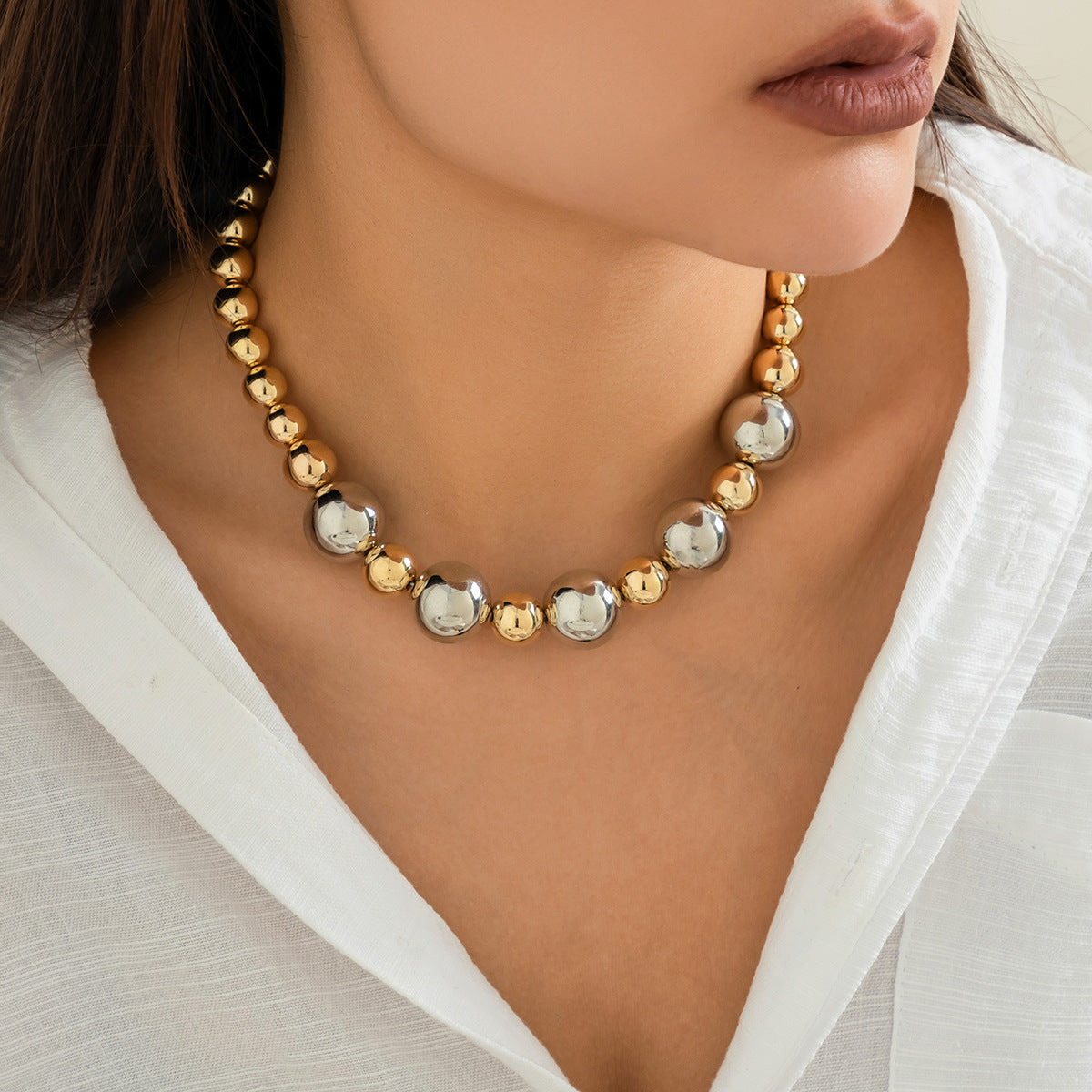 Collier de perles de couleur contrastée punk exagéré, bracelet boule