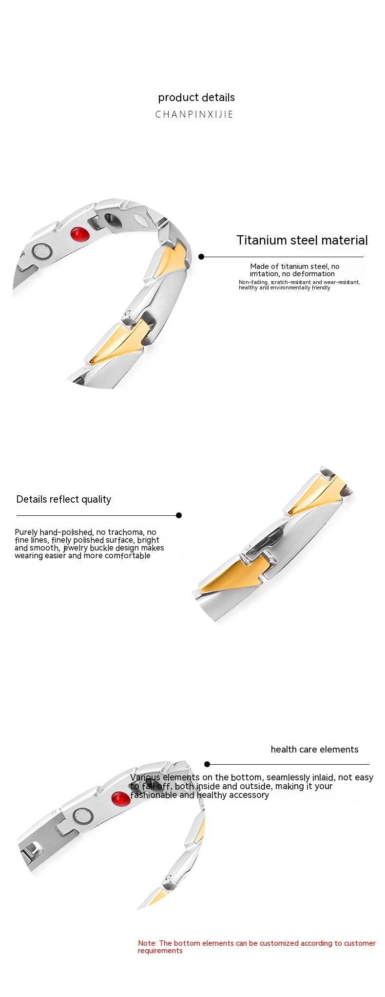 Bracelet de soins de santé à ions négatifs magnétiques quatre en un pour hommes et femmes