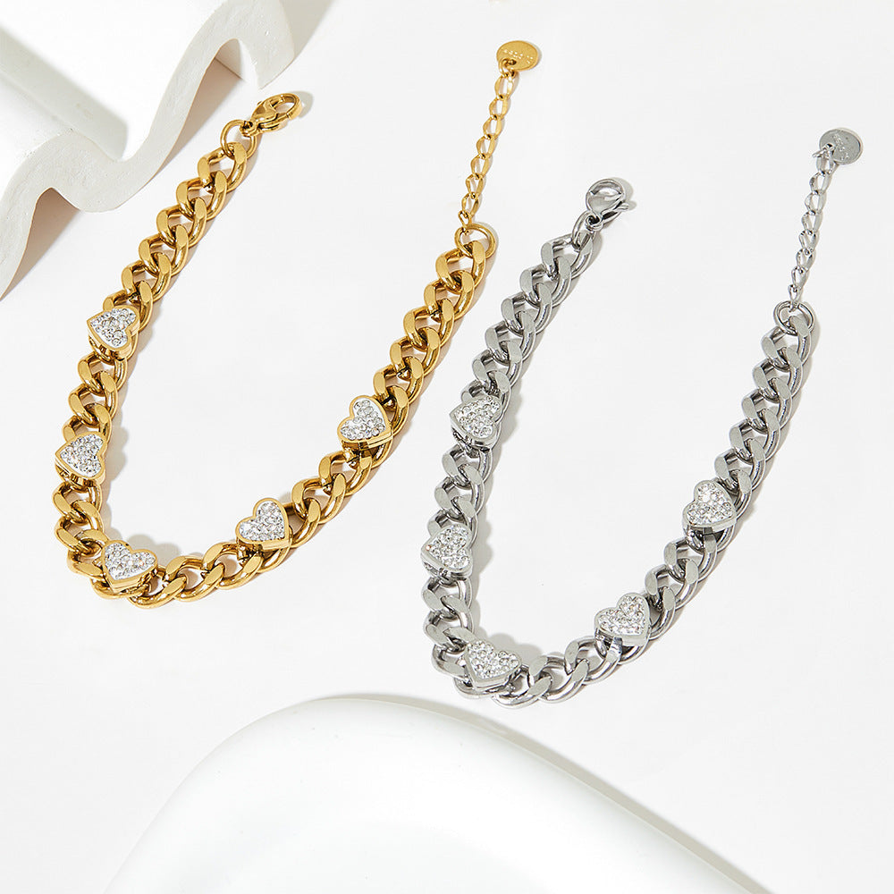 Bracelet rétro français en acier inoxydable et Zircon en forme de cœur