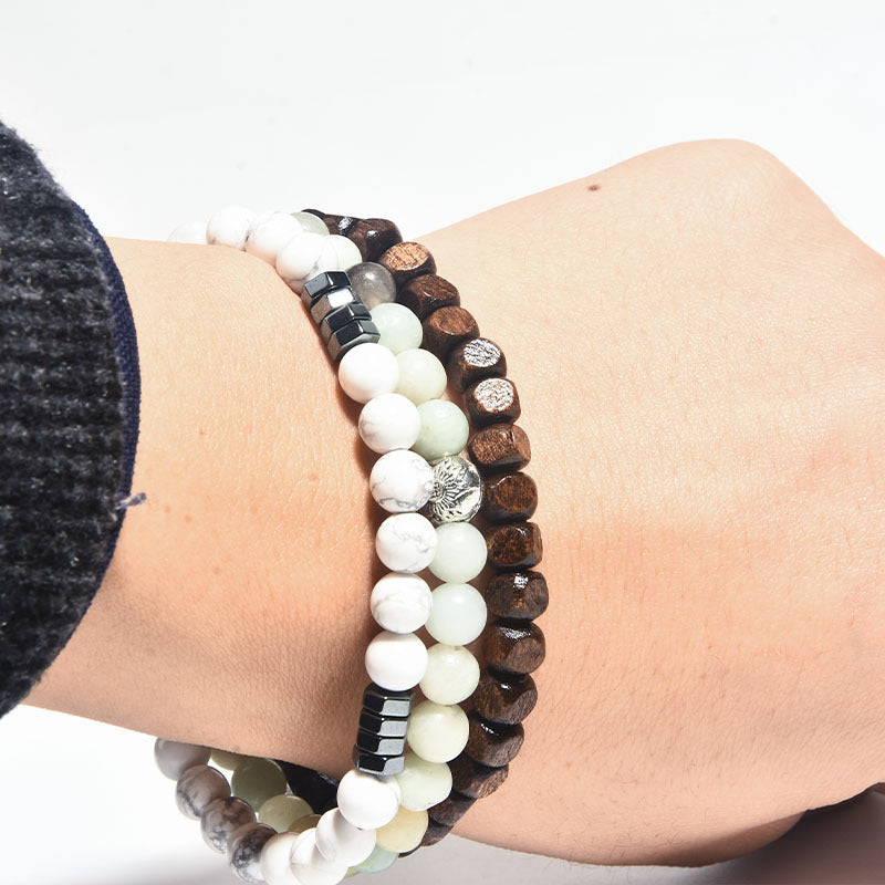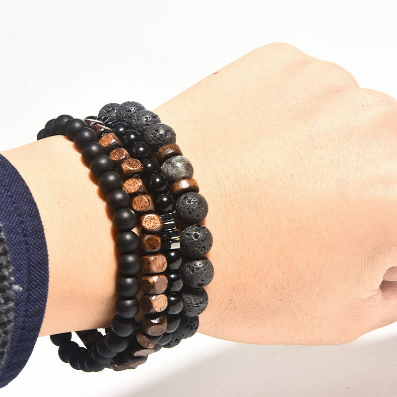 Hematite Beaded Polishing Volcanic Rock Wooden Bead Bracelet