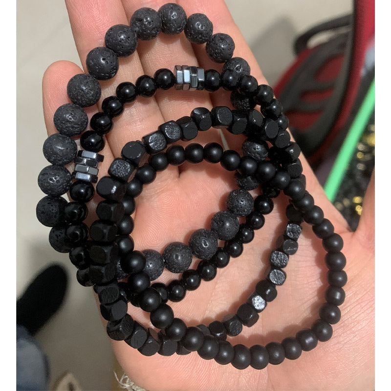 Color: A Style 4 pieces suit, B style 4 pieces suit black, 3 pieces suit, bright black 6MM, wooden posts, volcanic rock/glitter 8mm,6MM frosted