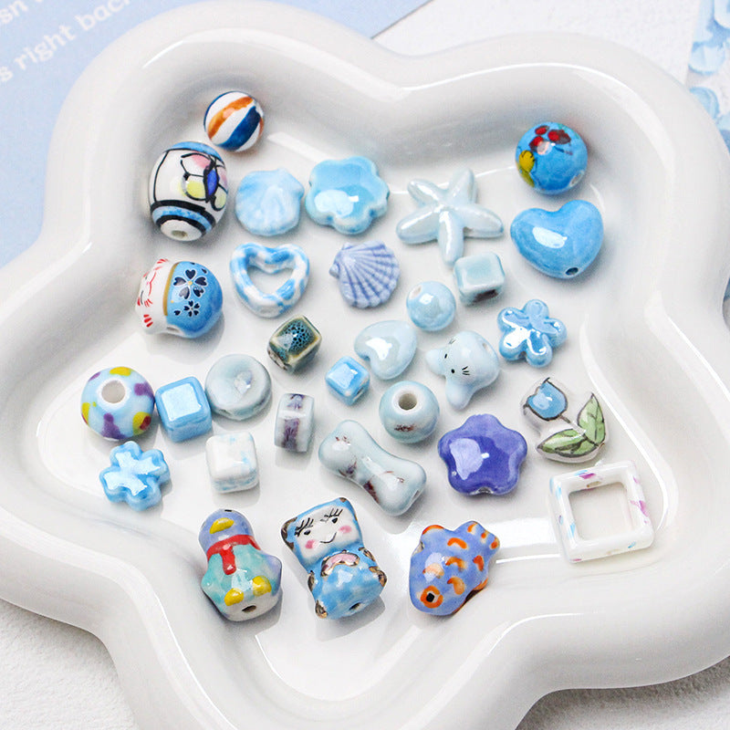 Série bleue en céramique japonaise dispersée, bricolage, collier de perles fait à la main, Bracelet, matériel de perles d'espacement