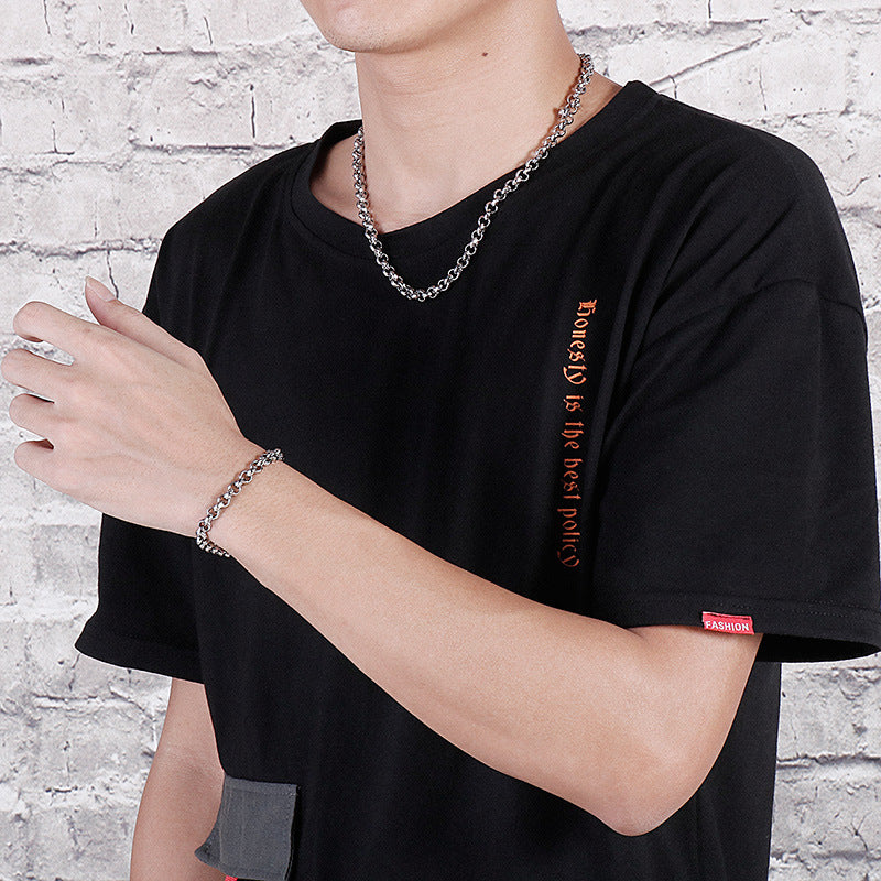 Bracelet pour homme en acier titane avec chaîne à surface multi-coupe
