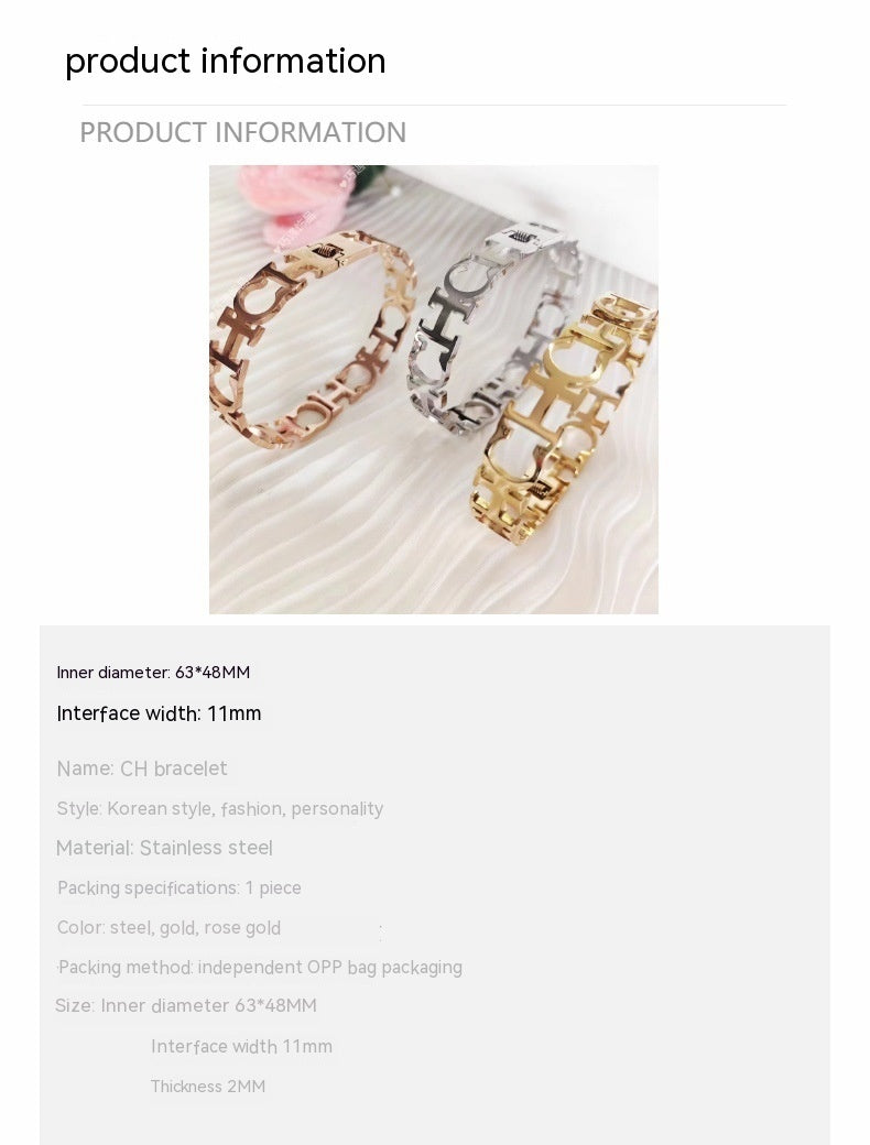 Bracelet à lettres en acier inoxydable, niche, ne se décolore pas, en forme d'œuf, fermeture à ressort creuse