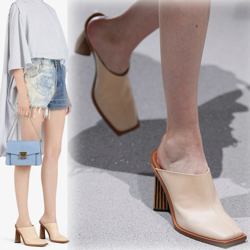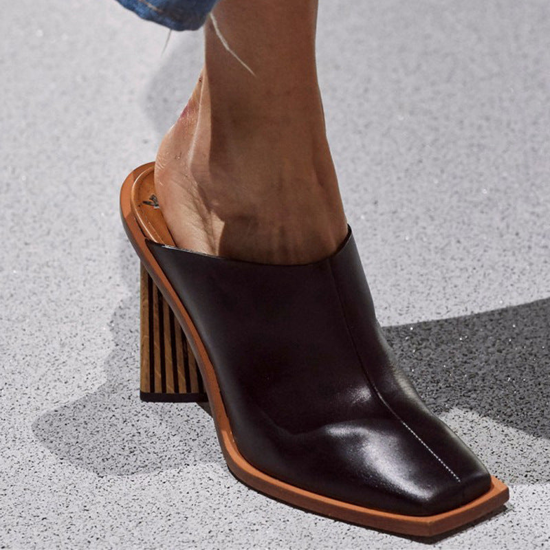 Demi-pantoufles paresseuses à bout carré et talon profilé