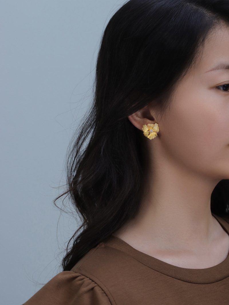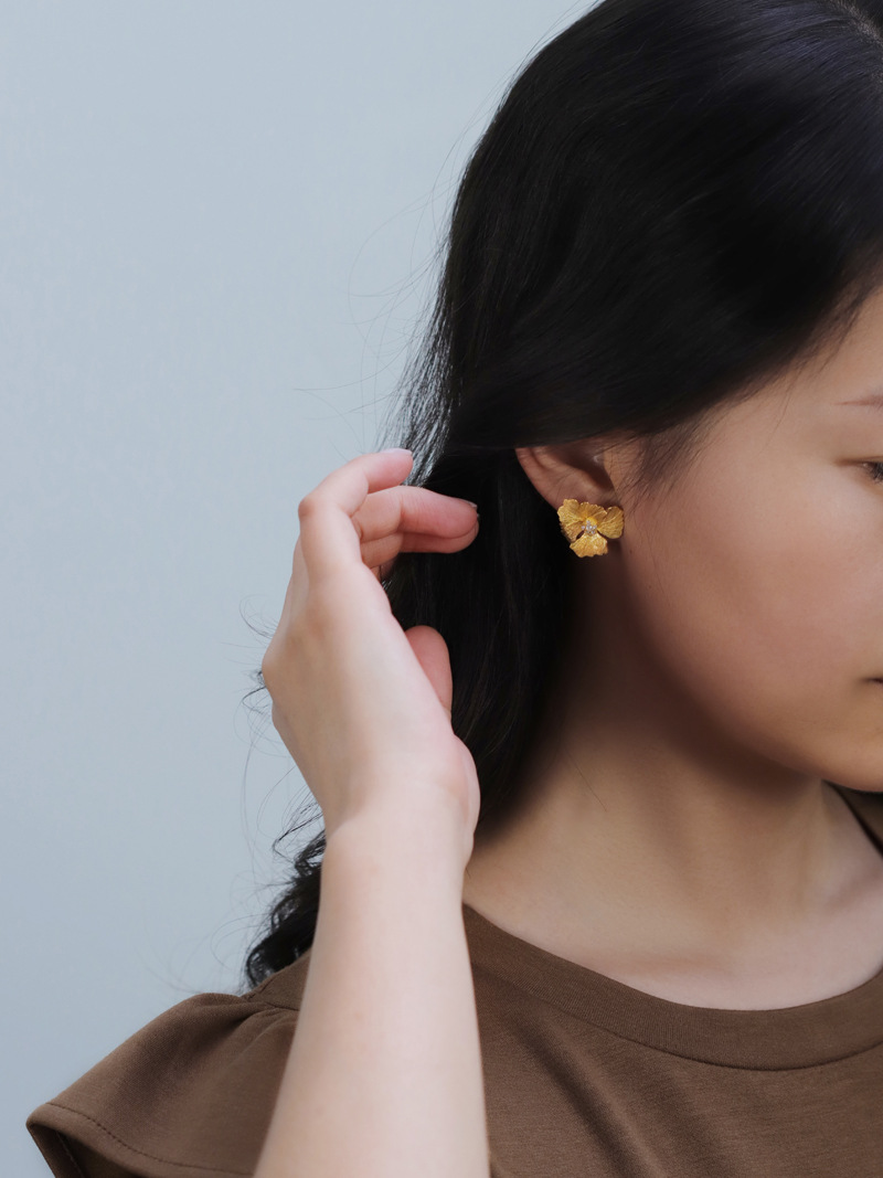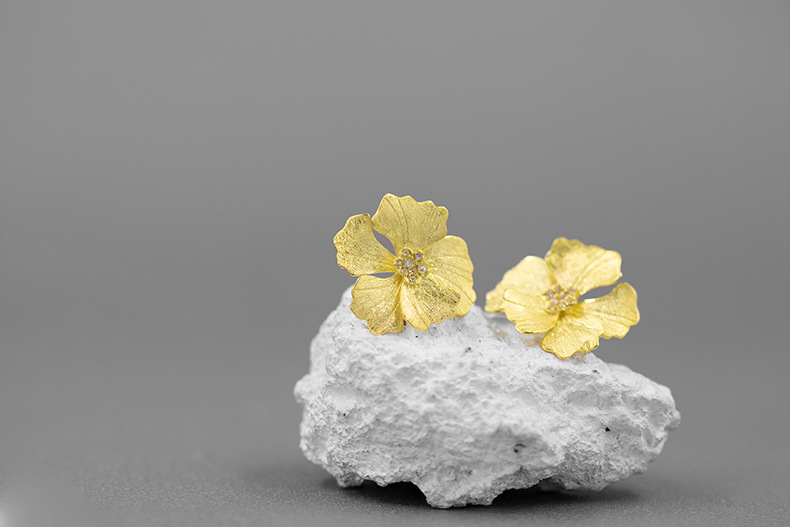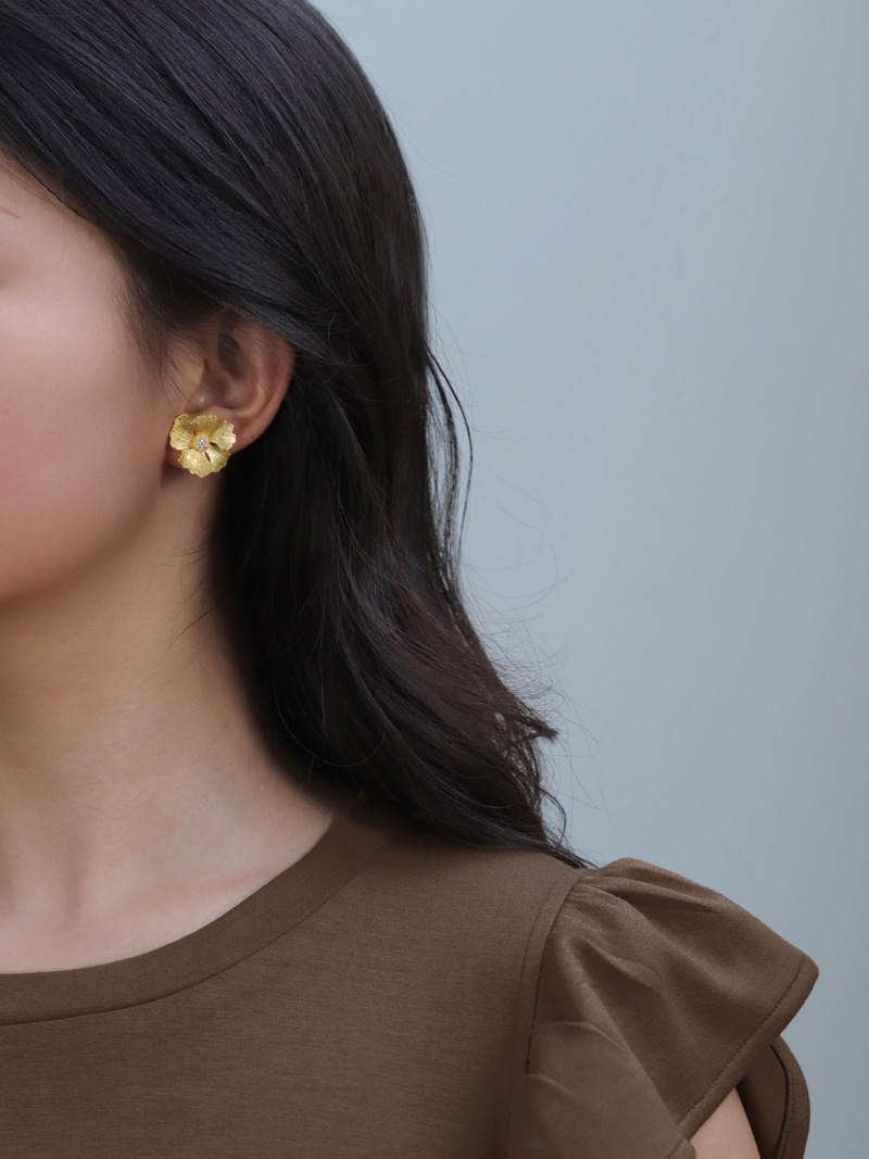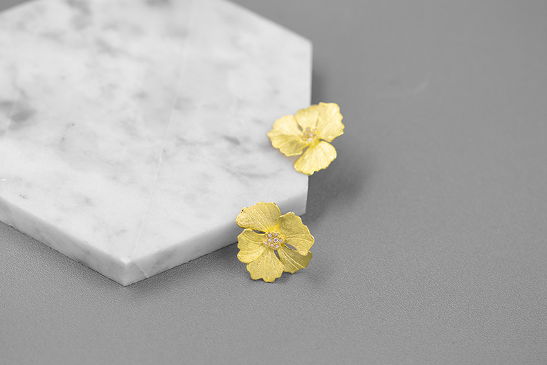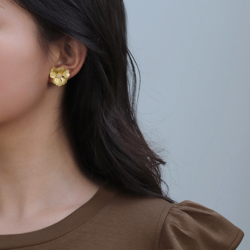 Boucles d'oreilles fleur de pivoine de haute qualité de style français en argent sterling