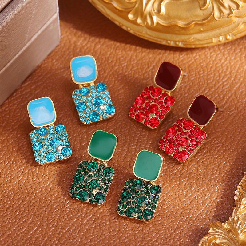 Boucles d'oreilles carrées à géométrie de couleur macarons à aiguilles en argent sterling