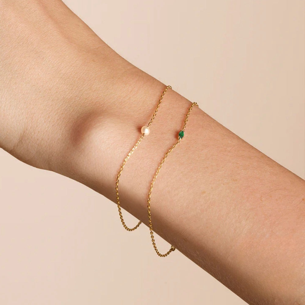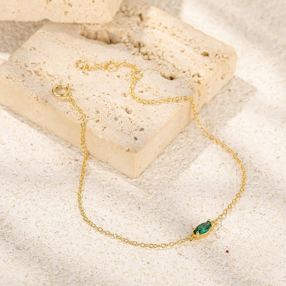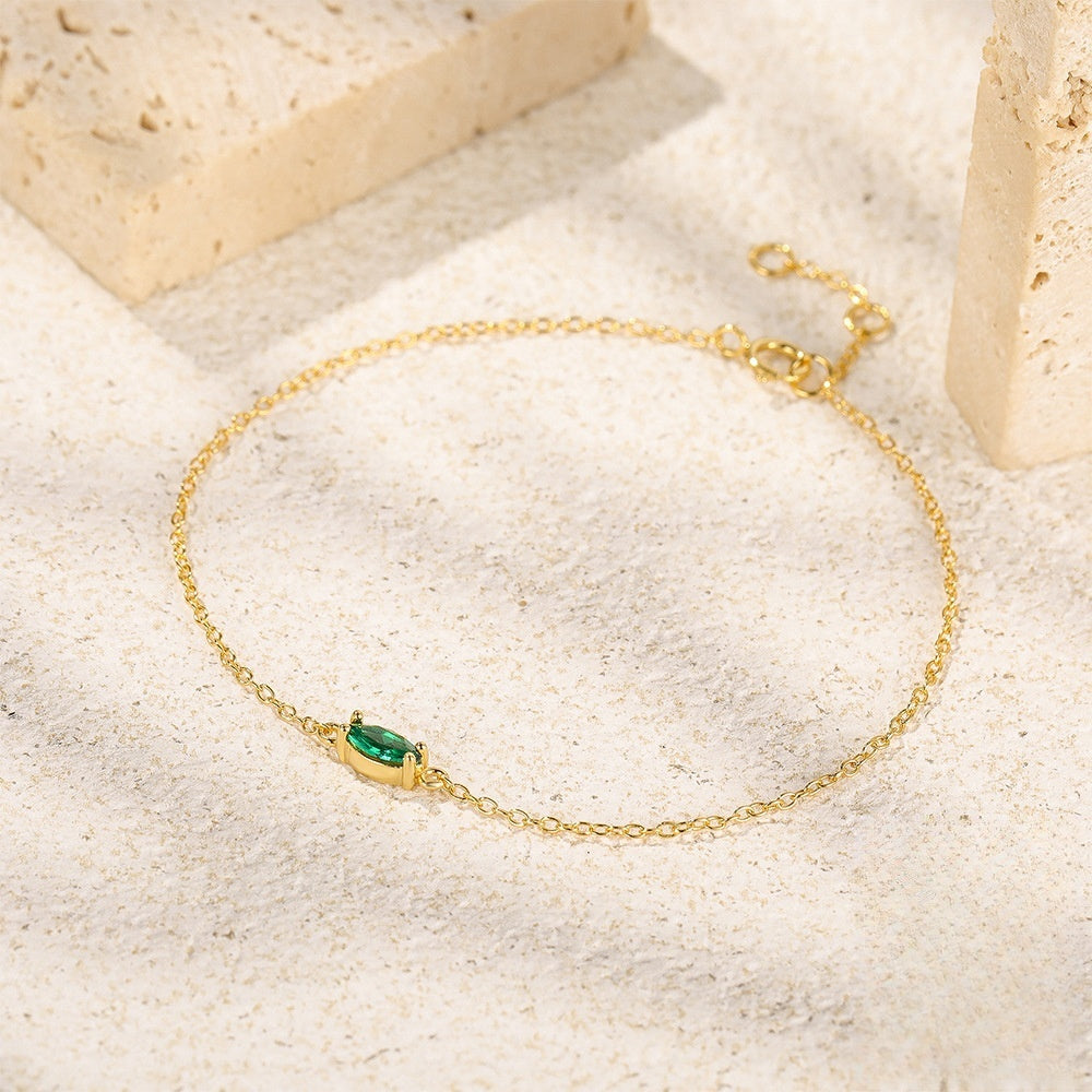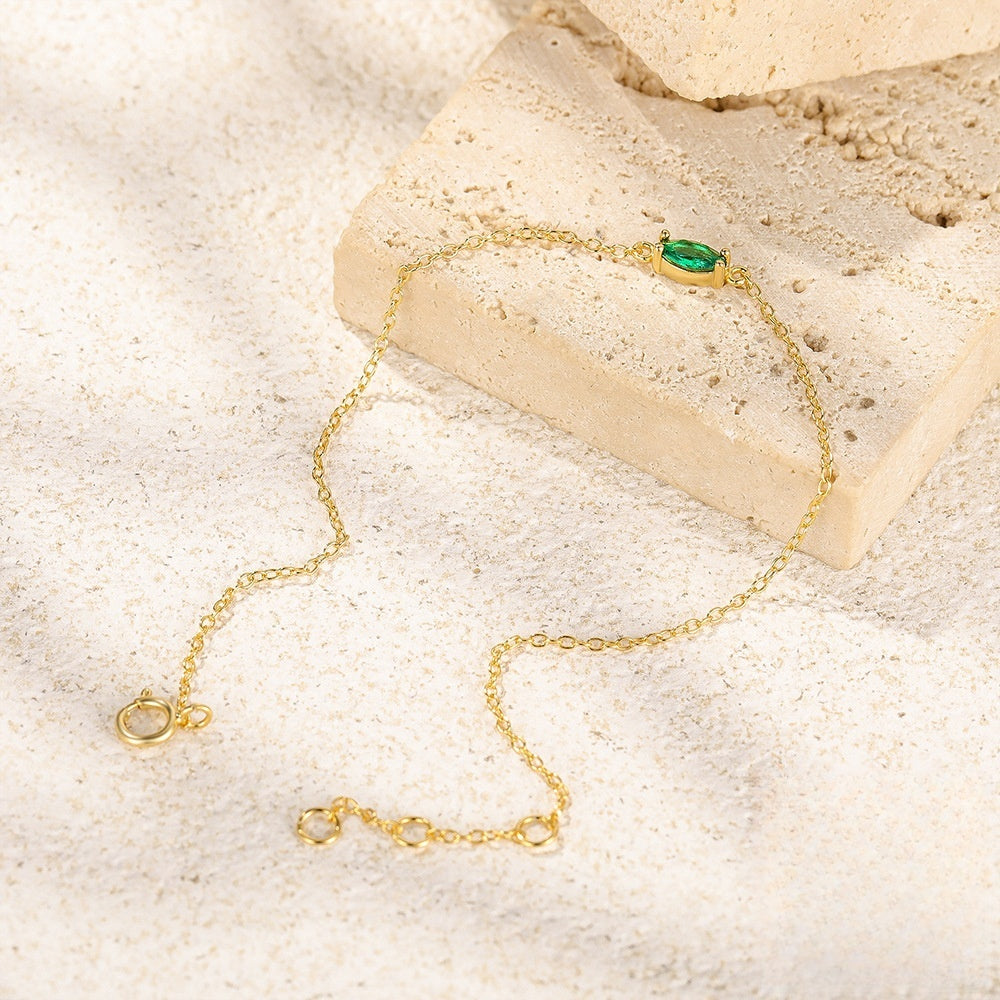 European And American Fashion Sterling Silver 925 Green Diamond Bracelet New Simple O-shaped Chain Zircon Bracelet