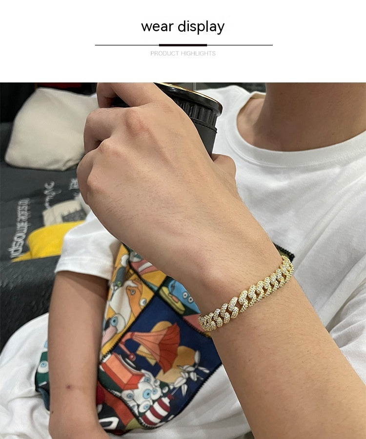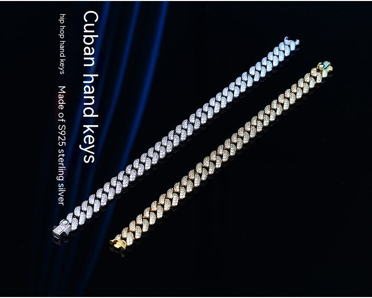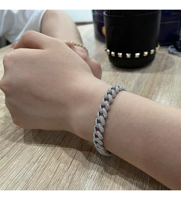 Cuban Link Chain Bracelet Men's Fashion Hip Hop Couple Sterling Silver Simple Hand Jewelry