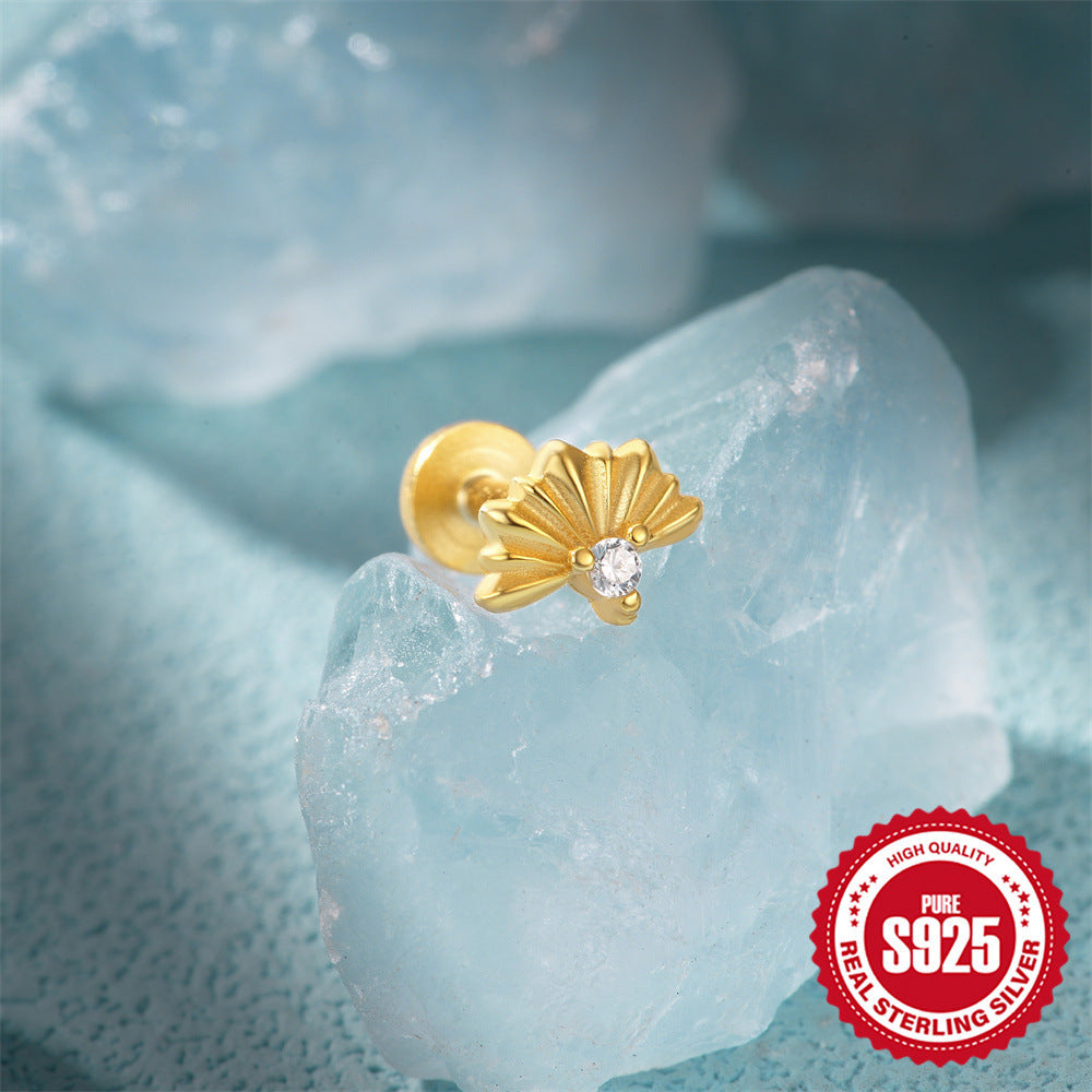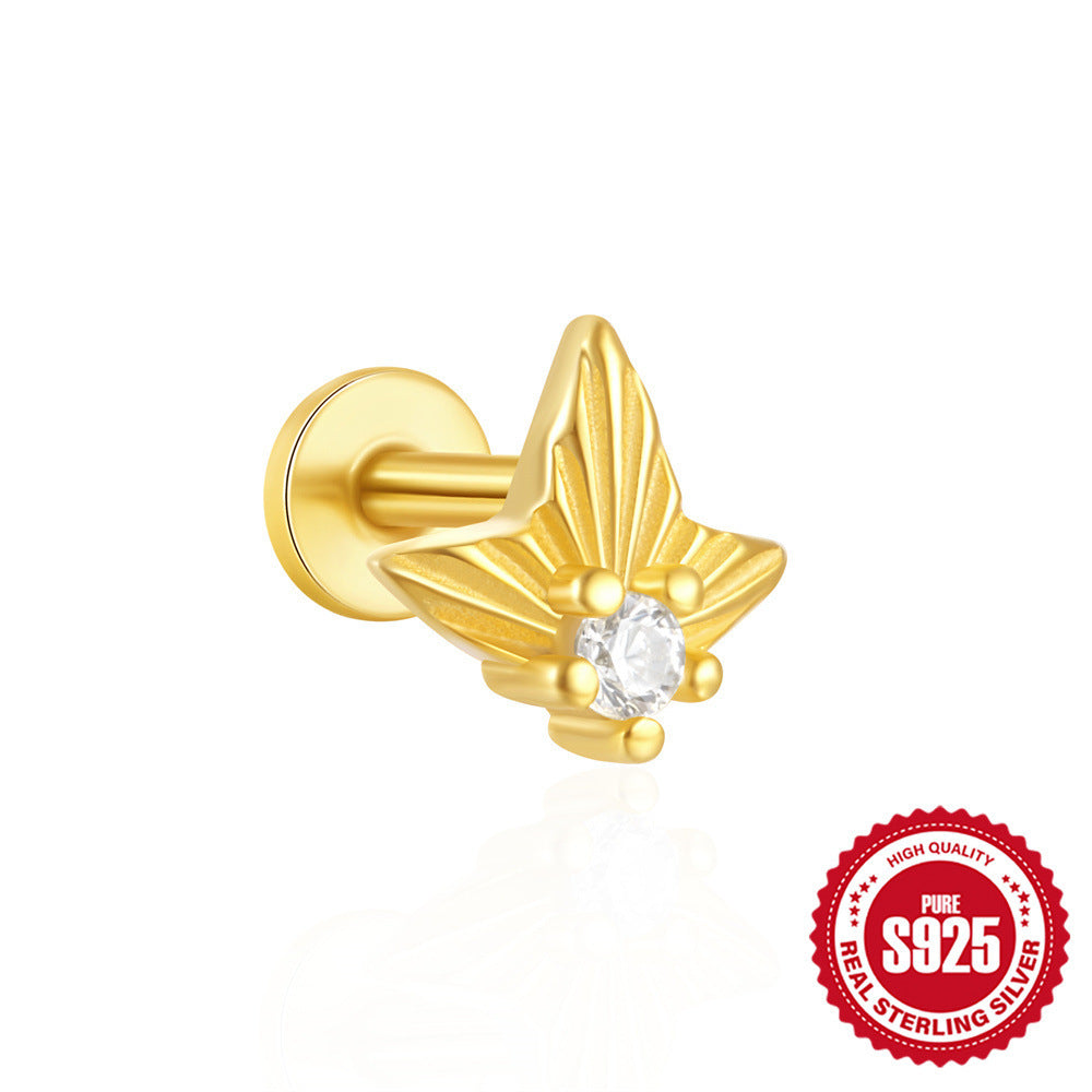 Fashion S925 Sterling Silver Water Drop Pomegranate Opal Triangle Pattern Thread Diamond-embedded Flat Head Piercing Earrings
