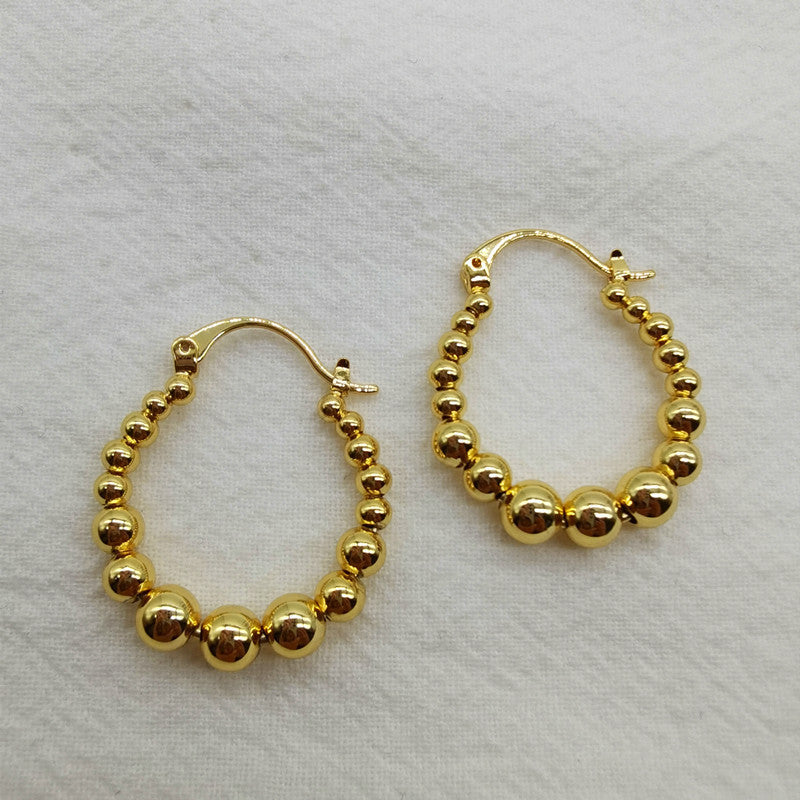 Gold Ball Hoop Earrings Beaded Circle Ear Clip