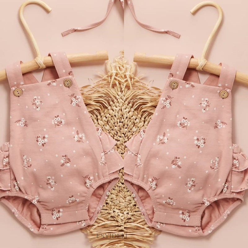 Kids Fashion Print Ruffle Sling Bodysuit