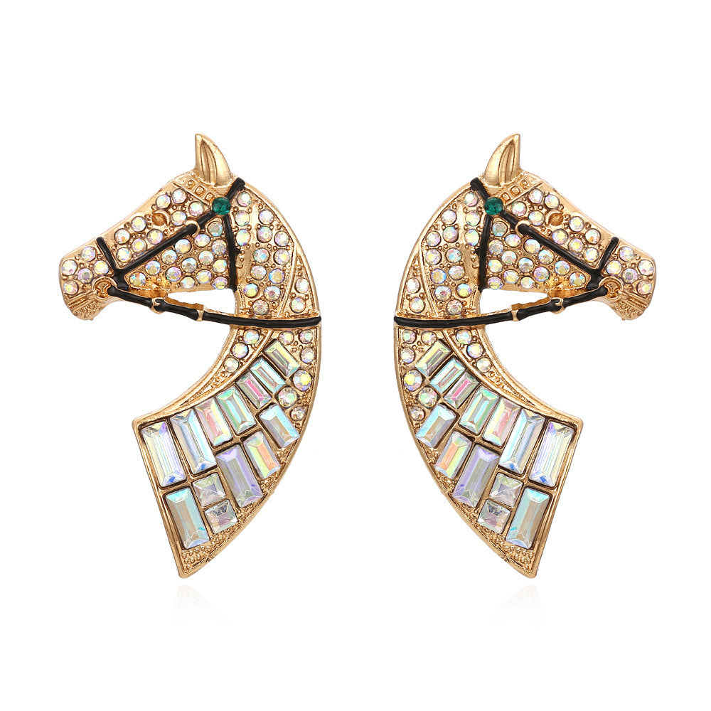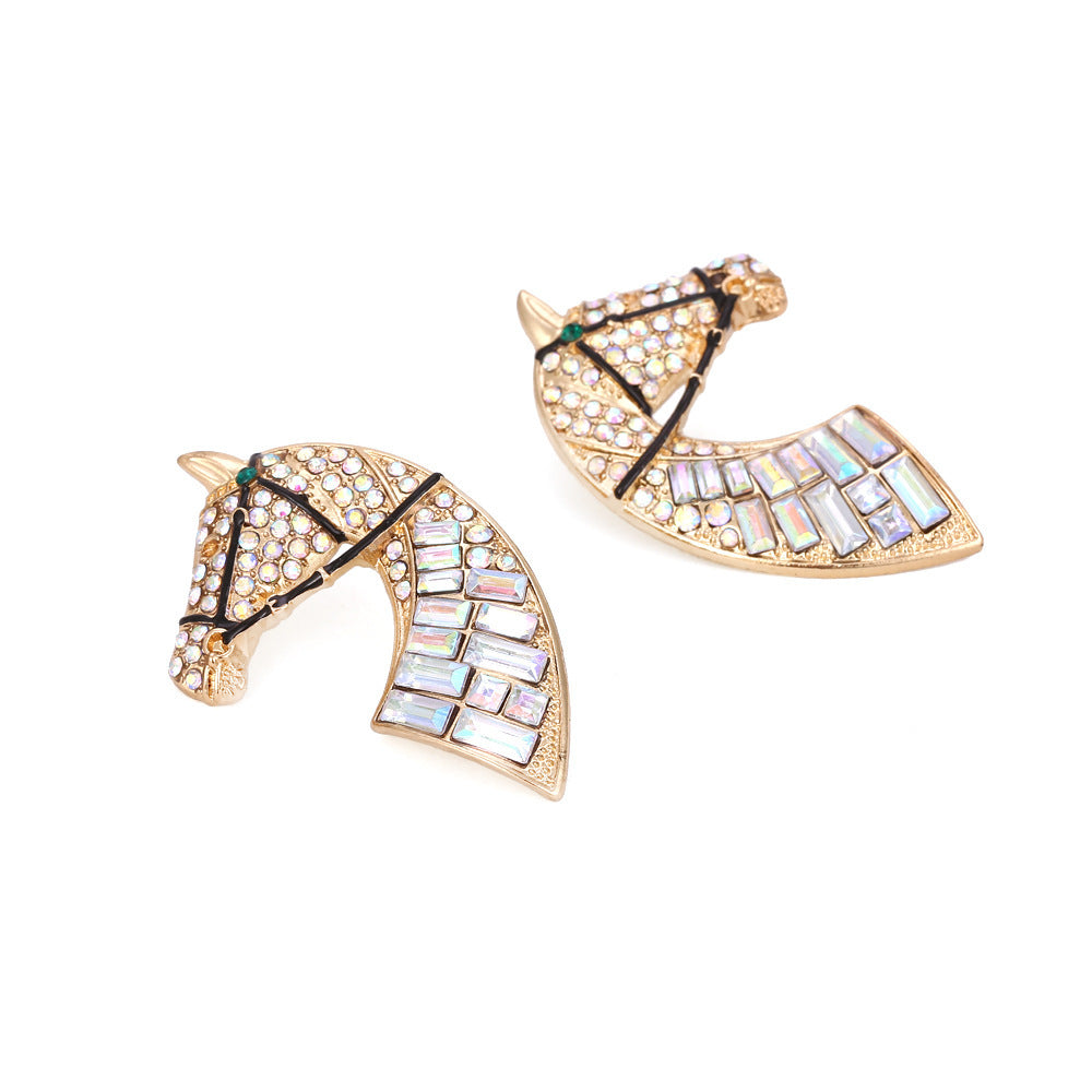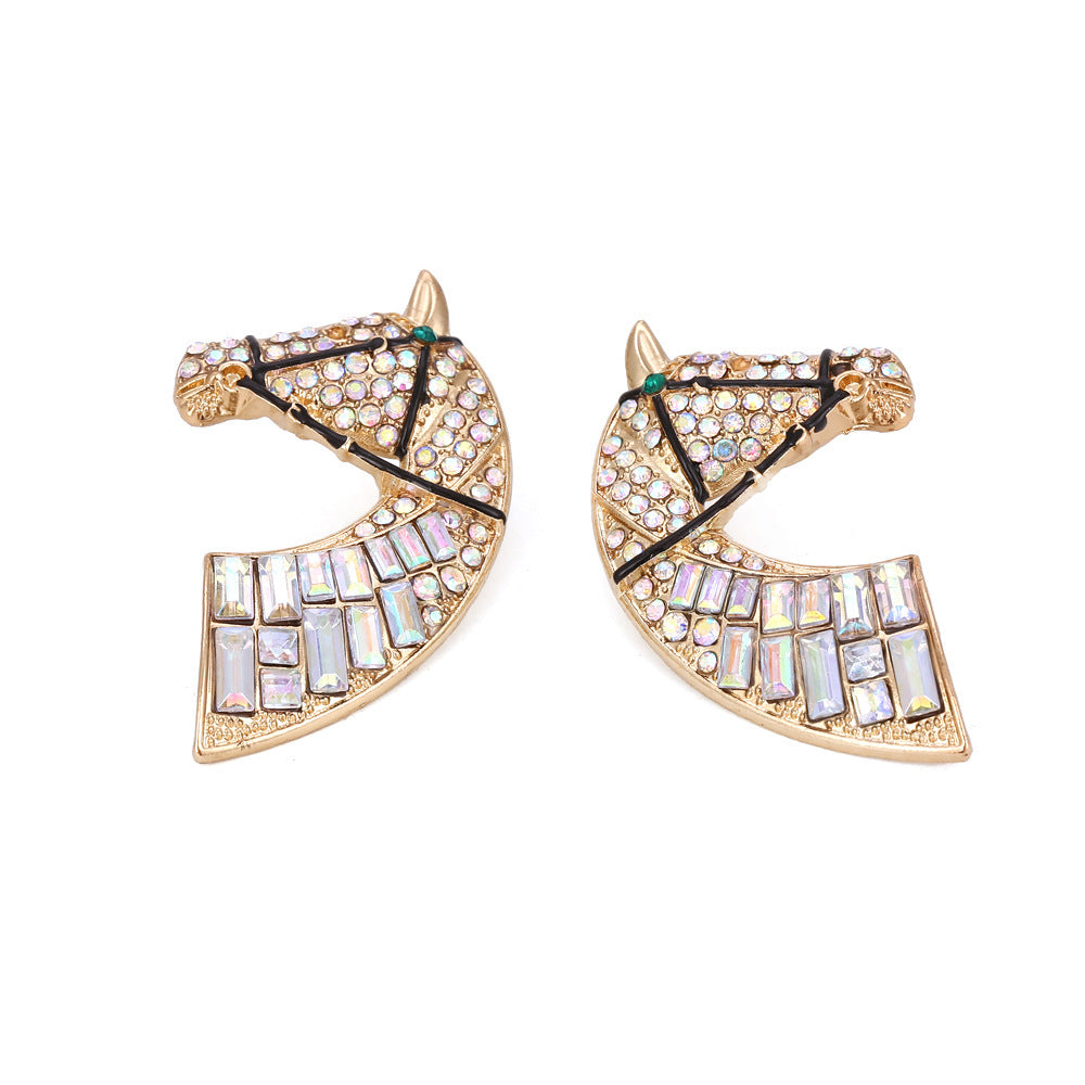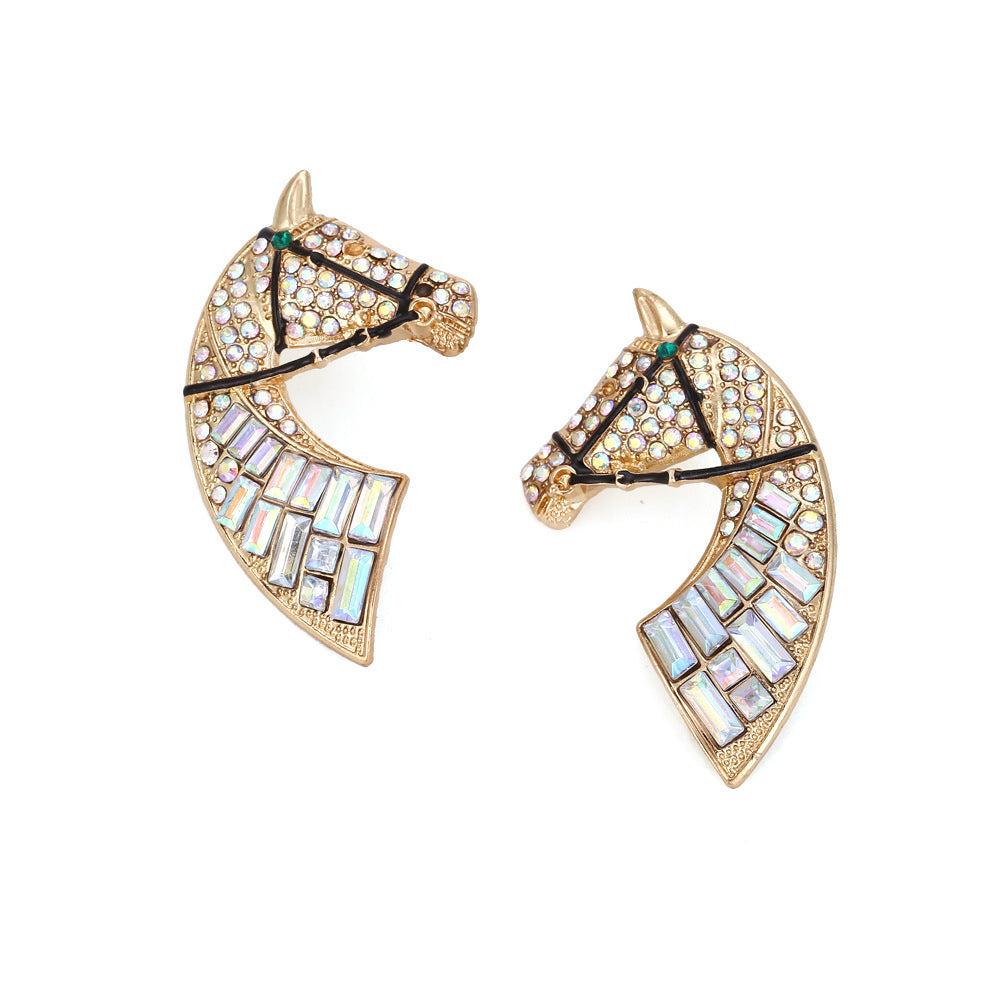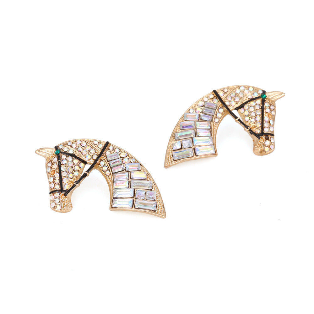 Minimalist Creative Alloy Rhinestone Earrings Retro Fashion Horse Head Color AB Diamond