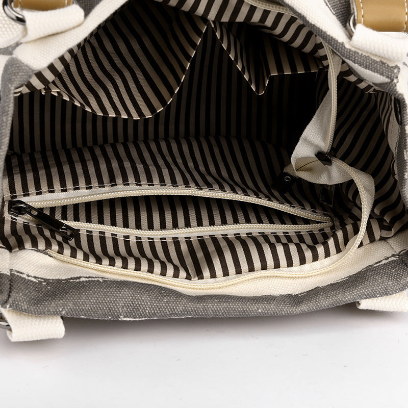Outdoor Fashion Canvas Large Capacity Striped One-shoulder Storage Handbag