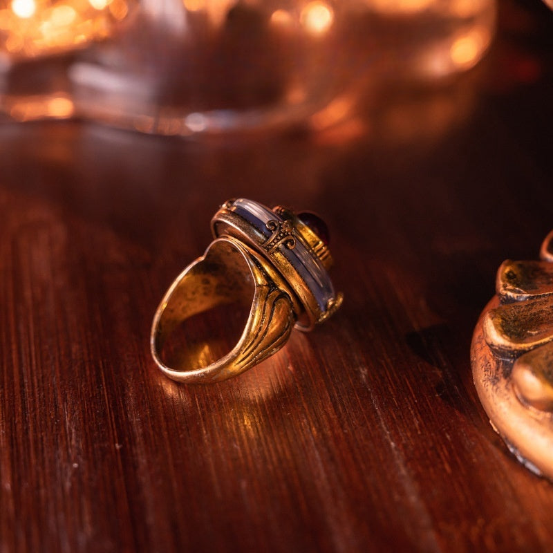 Western Antique Retro Series Blue Handmade Glass Brass Plated Gold Ring