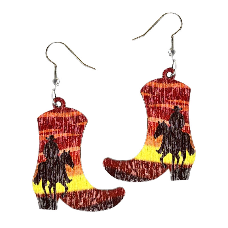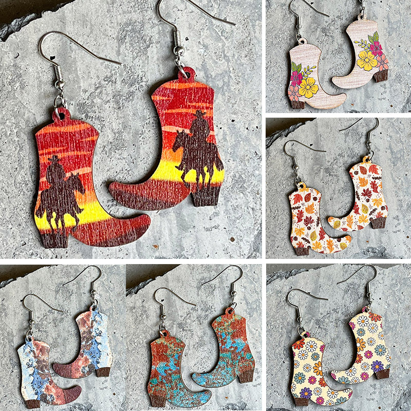 Western Denim Boots Floral Ethnic Style Wooden Vintage Floral Autumn Leaf Earrings